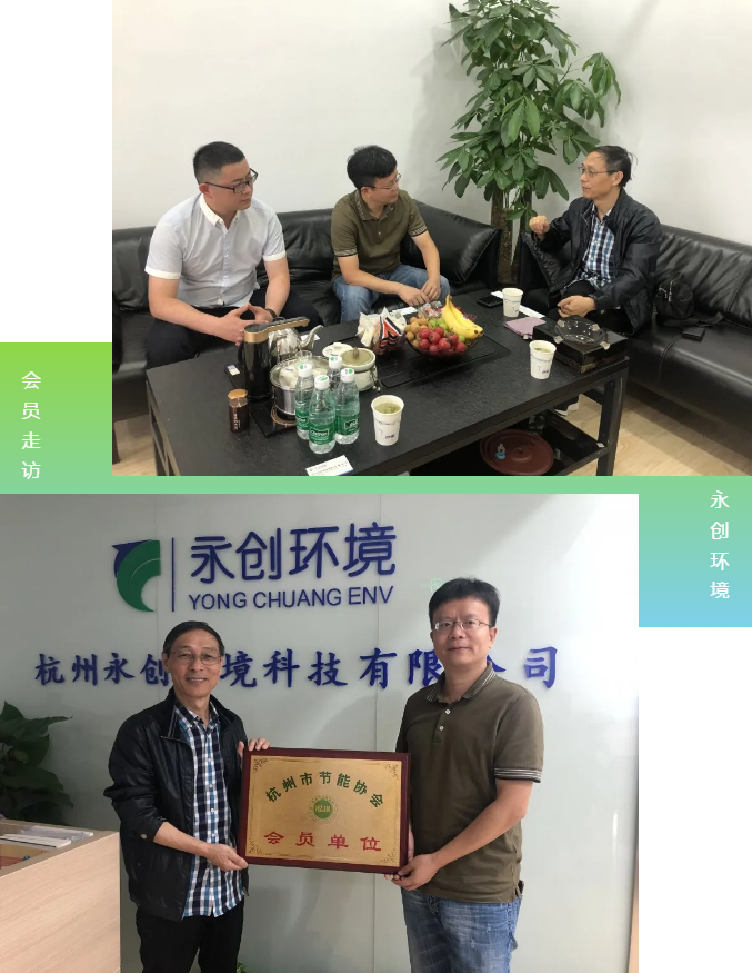 9月18日上午,协会秘书长包优祥携秘书处一行人赴杭州永创环境科技有限公司走访交流。杭州永创环境科技有限公司总经理徐永宁、项目经理李治部与到访人员进行了座谈交流。协会授予永创环境“会员单位”铜牌。